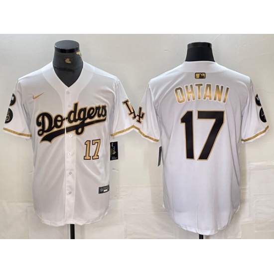 Mens Los Angeles Dodgers #17 Shohei Ohtani Number White Gold Fashion Stitched Cool Base Limited Jersey