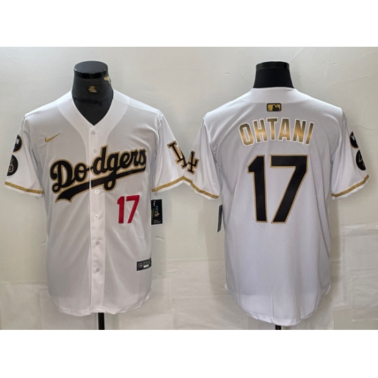 Men's Los Angeles Dodgers #17 Shohei Ohtani Number White Gold Fashion Stitched Cool Base Limited Jerseys