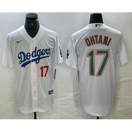 >Men's Los Angeles Dodgers #17 Shohei Ohtani Number White Green Stitched Cool Base Nike Jersey