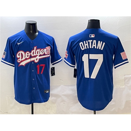 Men's Los Angeles Dodgers #17 Shohei Ohtani Royal With American Flag Limited Stitched Baseball Jersey
