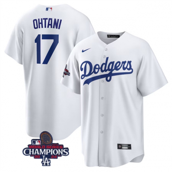 Men's Los Angeles Dodgers #17 Shohei Ohtani White 2024 World Series Champions Cool Base Stitched Baseball Jersey