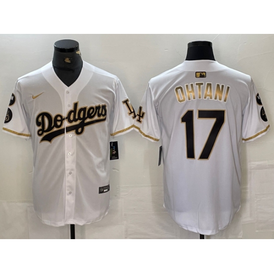 Men's Los Angeles Dodgers #17 Shohei Ohtani White Gold Fashion Stitched Cool Base Limited Jerseys