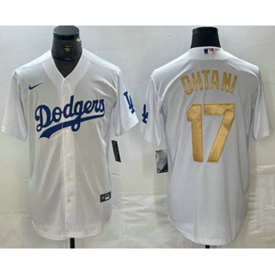Men's Los Angeles Dodgers #17 Shohei Ohtani White Gold Stitched Cool Base Nike Jerseys