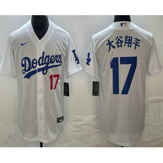 Men's Los Angeles Dodgers #17 Shohei Ohtani White Japanese Name Player Number Cool Base Jersey