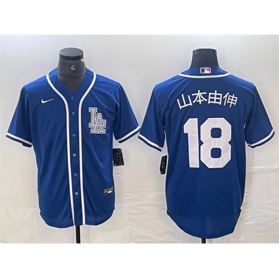 Men's Los Angeles Dodgers #18 山本由伸 Blue Cool Base Stitched Baseball Jersey