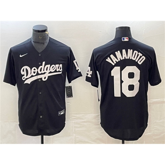 >Men's Los Angeles Dodgers #18 Yoshinobu Yamamoto Black Cool Base Stitched Jersey