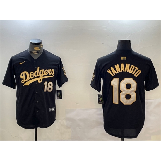 Men's Los Angeles Dodgers #18 Yoshinobu Yamamoto Black Gold Limited Stitched Baseball Jersey