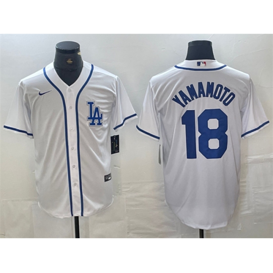 >Men's Los Angeles Dodgers #18 Yoshinobu Yamamoto White Cool Base Stitched Baseball Jersey