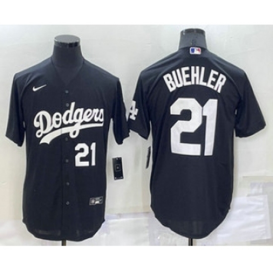 Men's Los Angeles Dodgers #21 Walker Buehler Number Black Turn Back The Clock Stitched Cool Base Jersey