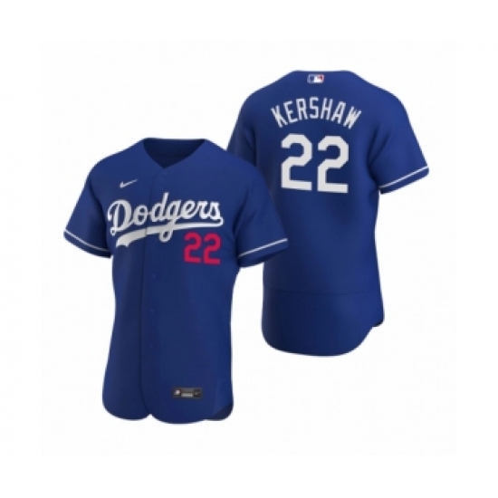 >Men's Los Angeles Dodgers #22 Clayton Kershaw Nike Royal Authentic 2020 Alternate Jersey