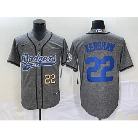 Men's Los Angeles Dodgers #22 Clayton Kershaw Number Grey Gridiron Cool Base Stitched Baseball Jersey