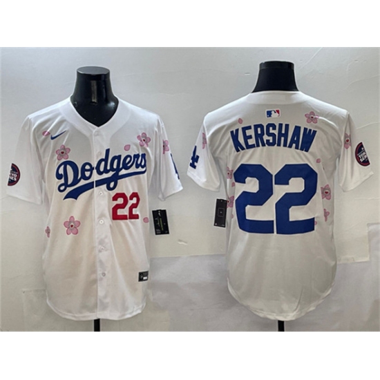 >Men's Los Angeles Dodgers #22 Clayton Kershaw White 2025 Tokyo Series Limited Stitched Baseball Jersey