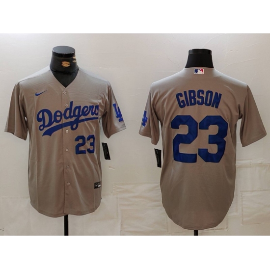 Men's Los Angeles Dodgers #23 Kirk Gibson Number Grey With los Cool Base Stitched Jerseys