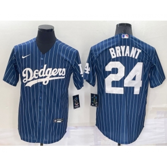 Men's Los Angeles Dodgers #24 Kobe Bryant Navy Blue Pinstripe Stitched MLB Cool Base Nike Jersey
