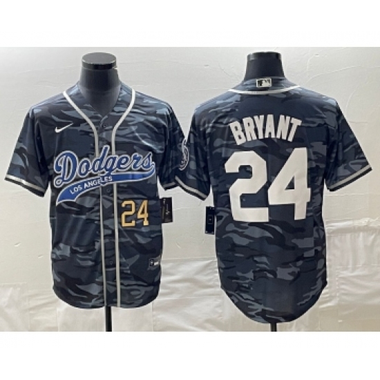 Men's Los Angeles Dodgers #24 Kobe Bryant Number Gray Camo Cool Base Stitched Baseball Jersey