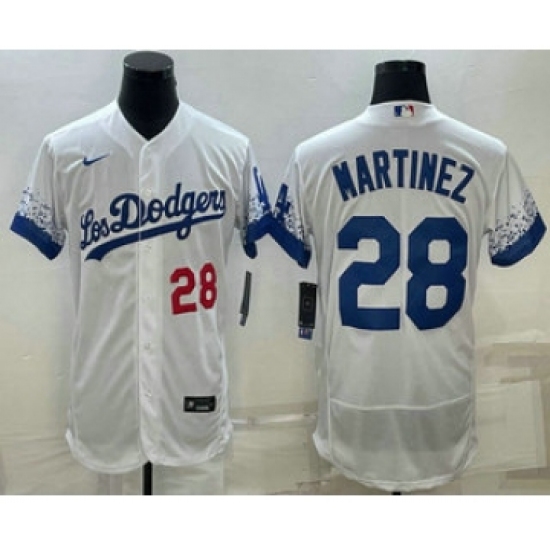 >Men's Los Angeles Dodgers #28 JD Martinez Number White 2022 City Connect Flex Base Stitched Jersey