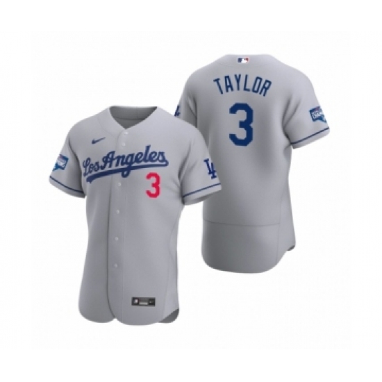 Men's Los Angeles Dodgers #3 Chris Taylor Gray 2020 World Series Champions Road Authentic Jersey
