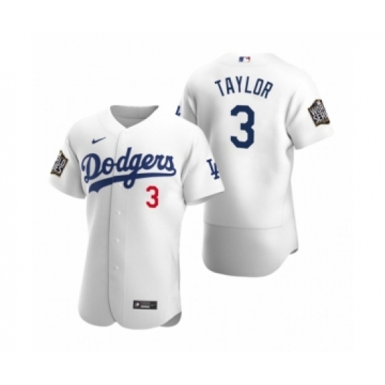 >Men's Los Angeles Dodgers #3 Chris Taylor Nike White 2020 World Series Authentic Jersey