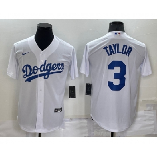 Men's Los Angeles Dodgers #3 Chris Taylor White Stitched MLB Cool Base Nike Jersey