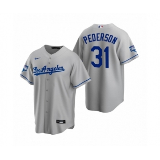 Men's Los Angeles Dodgers #31 Joc Pederson Gray 2020 World Series Champions Road Replica Jersey