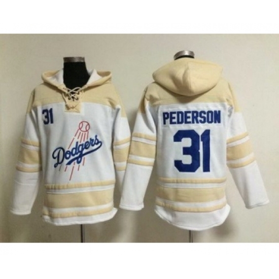 >Men's Los Angeles Dodgers #31 Joc Pederson Home White Hoodie