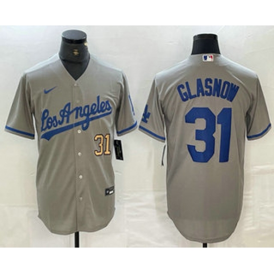>Men's Los Angeles Dodgers #31 Tyler Glasnow Gray Alternate Team Logo Cool Base Jersey