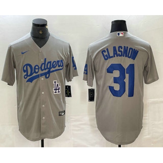 >Men's Los Angeles Dodgers #31 Tyler Glasnow Grey Stitched Cool Base Nike Jerseys