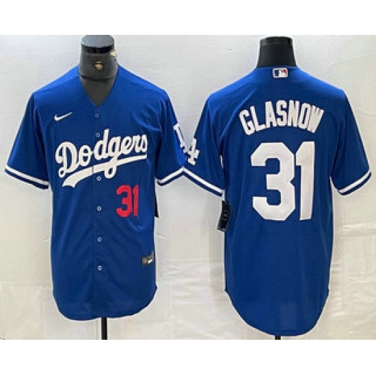 >Men's Los Angeles Dodgers #31 Tyler Glasnow Number Blue Stitched Cool Base Nike Jersey