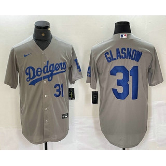 Men's Los Angeles Dodgers #31 Tyler Glasnow Number Grey Stitched Cool Base Nike Jerseys