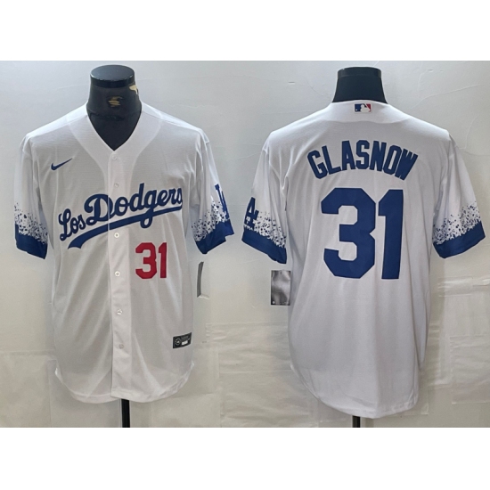 >Men's Los Angeles Dodgers #31 Tyler Glasnow Number White 2021 City Connect Cool Base Stitched Jerseys