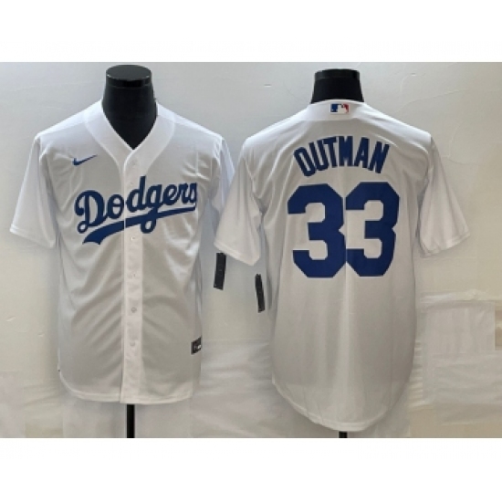>Men's Los Angeles Dodgers #33 James Outman White Cool Base Stitched Jersey