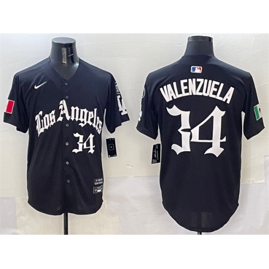 >Men's Los Angeles Dodgers #34 Fernando Valenzuela Black Mexico 2025 LA Gothic Style With Fernando Vapor Premier Limited Stitched Baseball Jersey