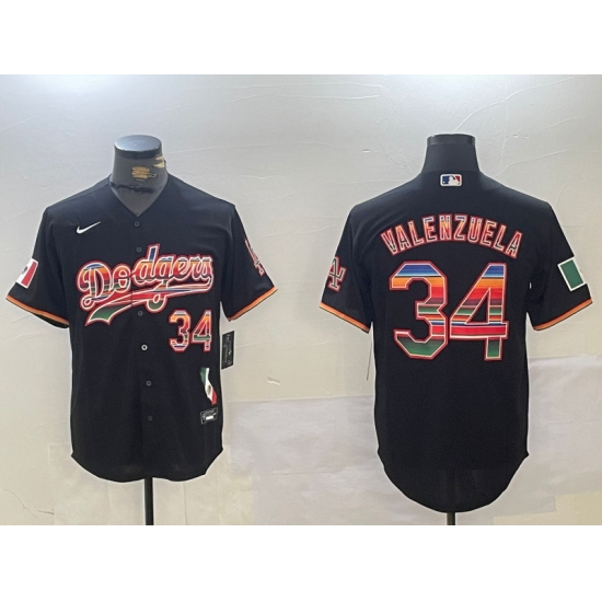 Men's Los Angeles Dodgers #34 Fernando Valenzuela Black Rainbow Mexico Cool Base Stitched Fashion Jersey