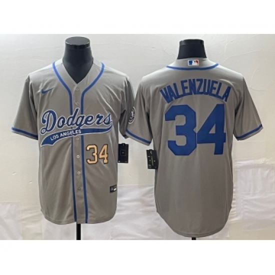 Men's Los Angeles Dodgers #34 Fernando Valenzuela Number Grey Cool Base Stitched Baseball Jersey