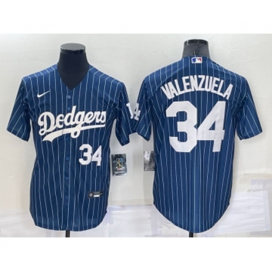 Men's Los Angeles Dodgers #34 Fernando Valenzuela Number Navy Blue Pinstripe Stitched MLB Cool Base Nike Jersey
