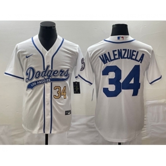 Men's Los Angeles Dodgers #34 Fernando Valenzuela white Authentic Collection Stitched MLB Jersey