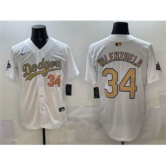>Men's Los Angeles Dodgers #34 Toro Valenzuela White 2025 Gold Collection Limited Stitched Baseball Jersey