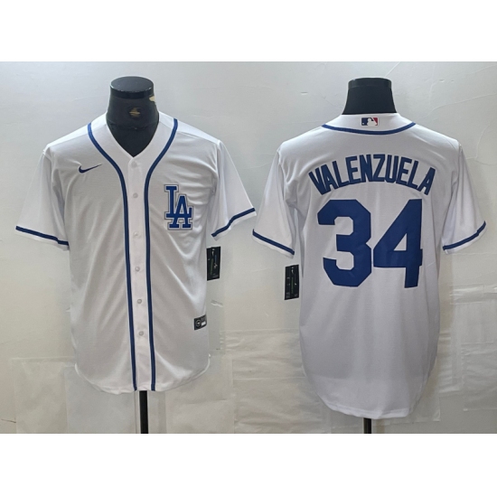 Men's Los Angeles Dodgers #34 Toro Valenzuela White Cool Base Stitched Baseball Jersey