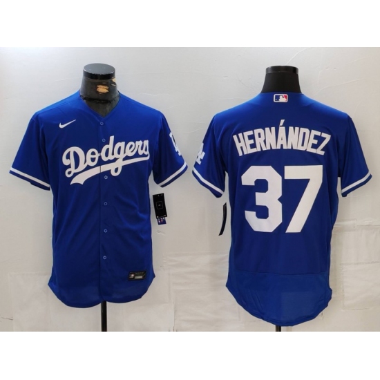 >Men's Los Angeles Dodgers #37 Teoscar Hernandez Blue Flex Base Stitched Jersey