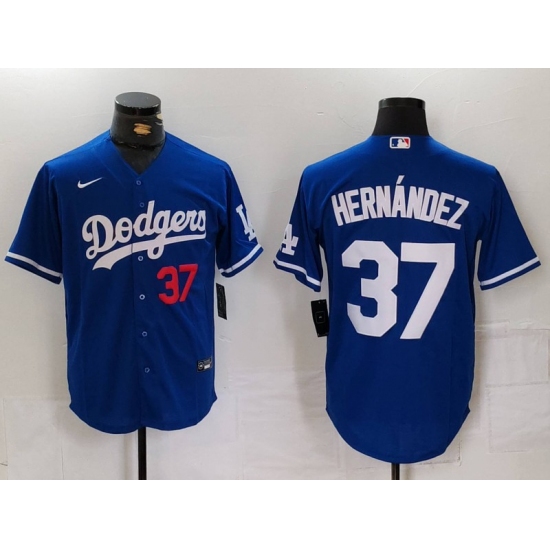 >Men's Los Angeles Dodgers #37 Teoscar Hernandez Number Blue Cool Base Stitched Jersey