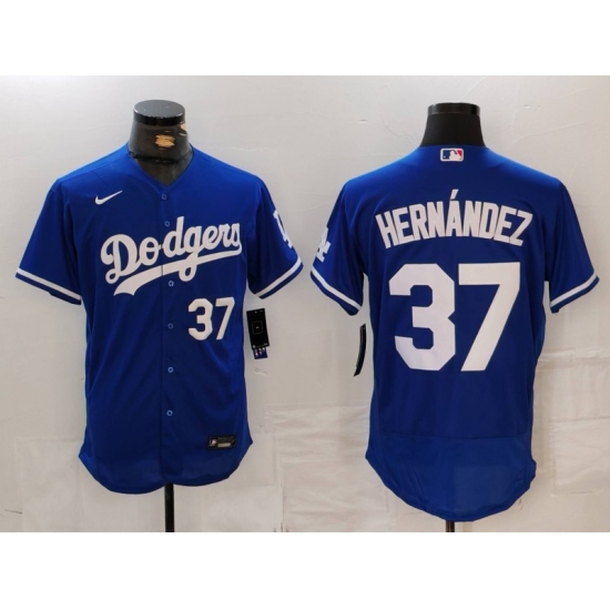 >Men's Los Angeles Dodgers #37 Teoscar Hernandez Number Blue Flex Base Stitched Jerseys