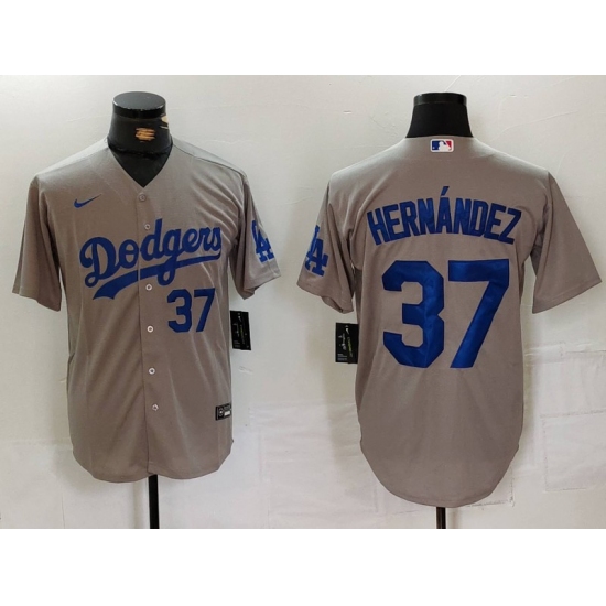 >Men's Los Angeles Dodgers #37 Teoscar Hernandez Number Grey Cool Base Stitched Jerseys