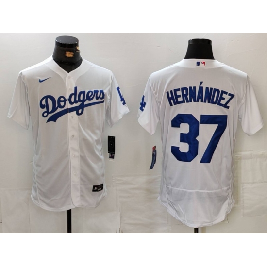 >Men's Los Angeles Dodgers #37 Teoscar Hernandez White Flex Base Stitched Jersey
