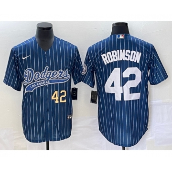 Men's Los Angeles Dodgers #42 Jackie Robinson Number Blue Pinstripe Cool Base Stitched Baseball Jersey
