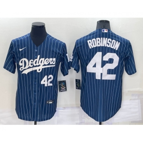 Men's Los Angeles Dodgers #42 Jackie Robinson Number Navy Blue Pinstripe Stitched MLB Cool Base Nike Jersey
