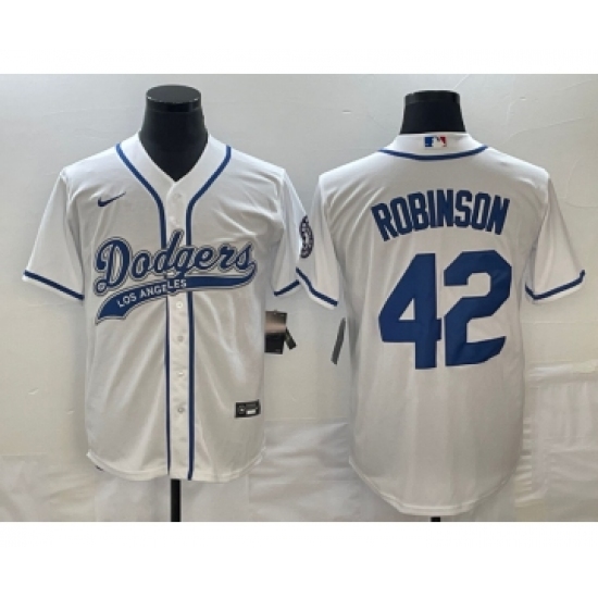 Men's Los Angeles Dodgers #42 Jackie Robinson White With Patch Cool Base Stitched Baseball Jersey