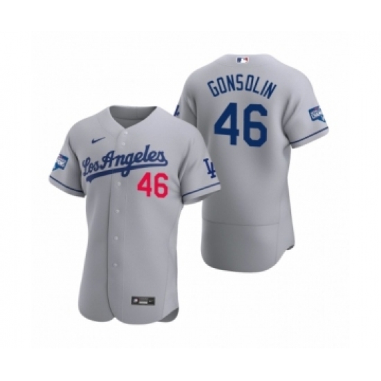 Men's Los Angeles Dodgers #46 Tony Gonsolin Gray 2020 World Series Champions Road Authentic Jersey