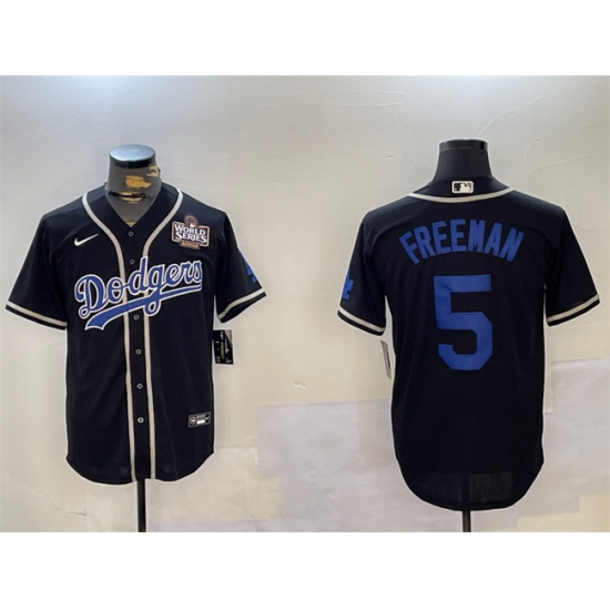 >Men's Los Angeles Dodgers #5 Freddie Freeman Black 2024 World Series Cool Base Stitched Baseball Jerseys