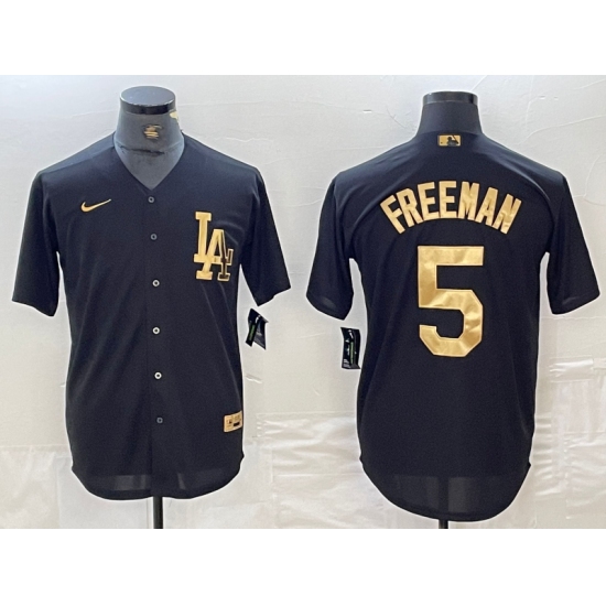 >Men's Los Angeles Dodgers #5 Freddie Freeman Black Gold Cool Base Stitched Jersey