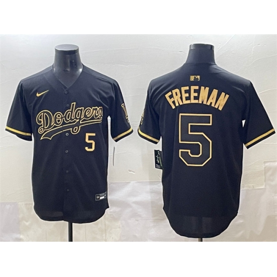 Men's Los Angeles Dodgers #5 Freddie Freeman Black Gold Limited Stitched Jersey